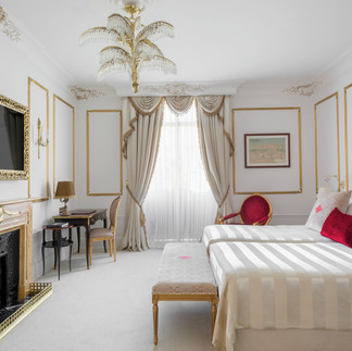 Upstairs, the room design is “updated classic” rather than a museum piece. Think high ceilings, tall windows, deep mattresses, and bathrooms that lean toward Roman bath over trend-chasing minimalism. Many rooms have French balconies onto the boulevard; the quieter rooms nestle toward the courtyard. If you’ve come to celebrate, El Palace’s Art Suites are the house’s love letters to its bohemian past; either way, all rooms are "Old money" luxury that will not disappoint.