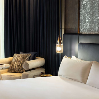 Interiors are by New York’s Rockwell Group, who lean into SLS’s signature playfulness: Venetian mirrors; glowing cocktail bars; marble-and-mirror bathrooms; a palette that shifts from moody jewel tones to breezy creams as you rise towards the roof. It’s deliciously photogenic, yet not precious; more “dress-up fun” than hushed museum piece.